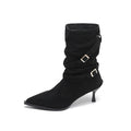 Fashionable And Versatile Pointed Toe Stiletto Heel Suede French Slim Ankle Boots
