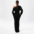 Ins Slim Long Sleeve Knitted Dress Evening Party Sexy Off-shoulder Bodycon Long Dresses