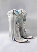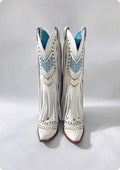 Retro Embroidered Rhinestone Slip-on Tassel Boots For Women