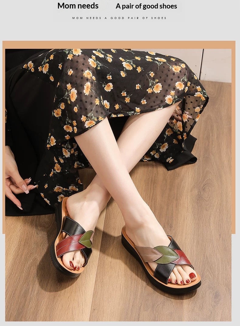 Slope Heel Soft Sole Versatile Shoes Fashionable Mom Sandals Flip Flops