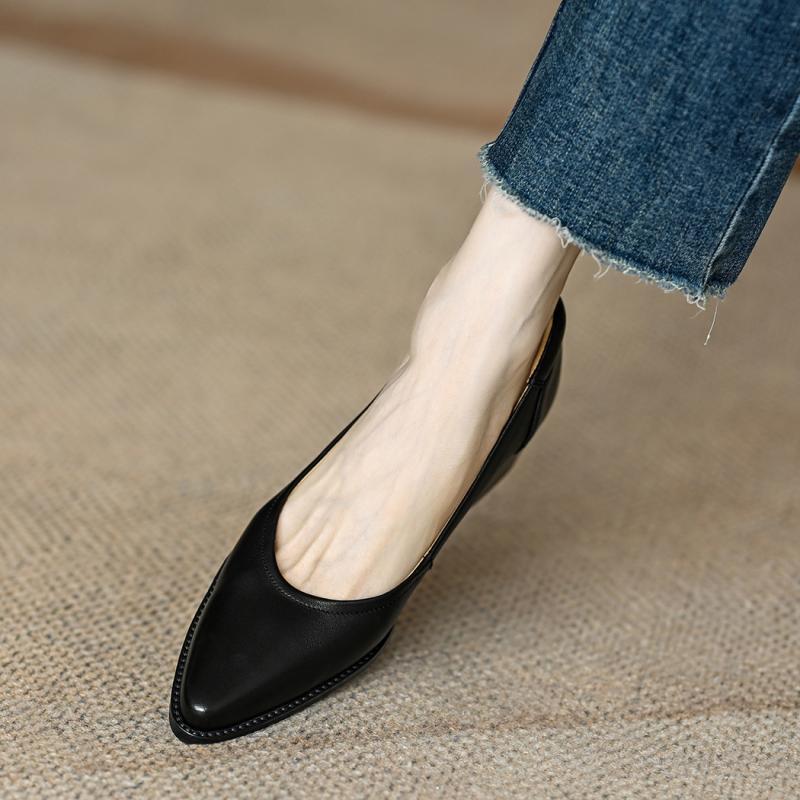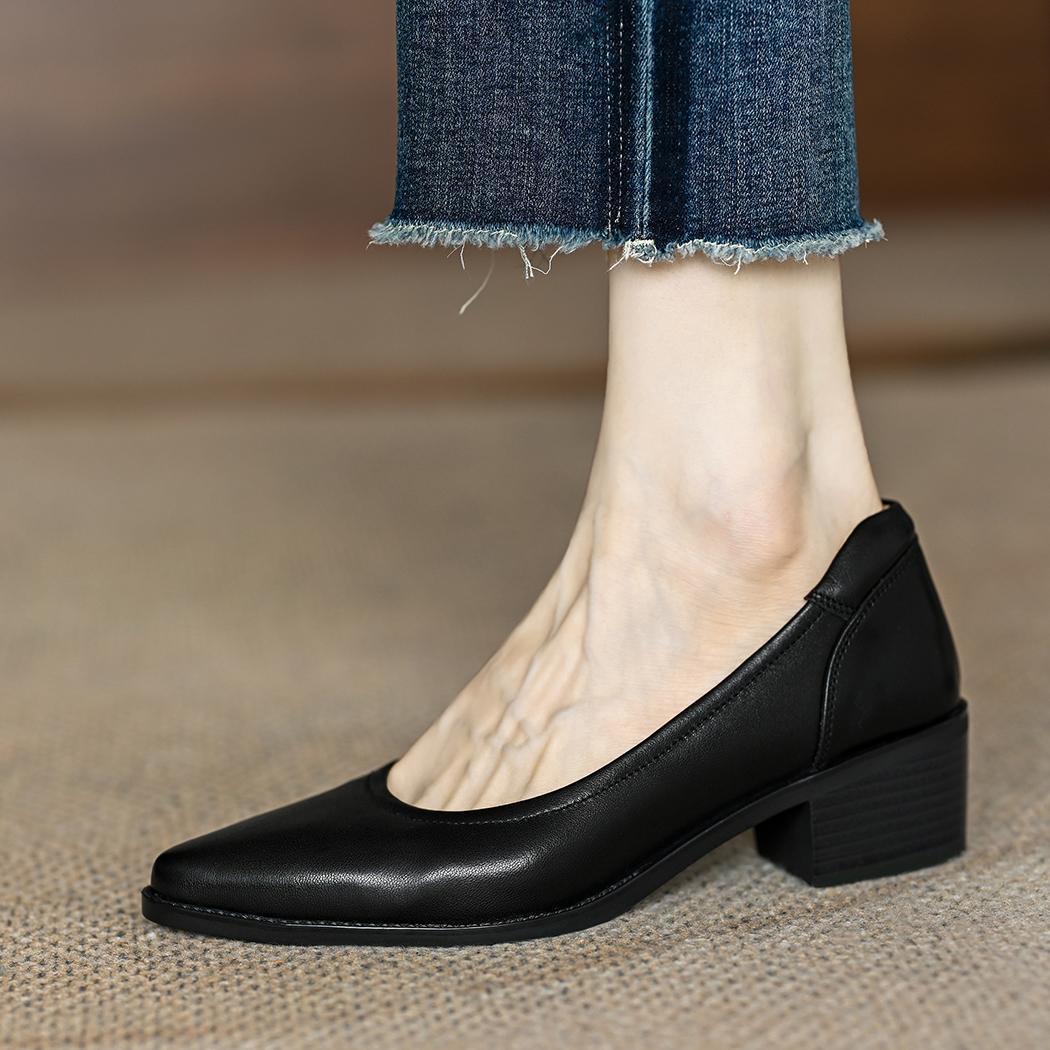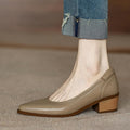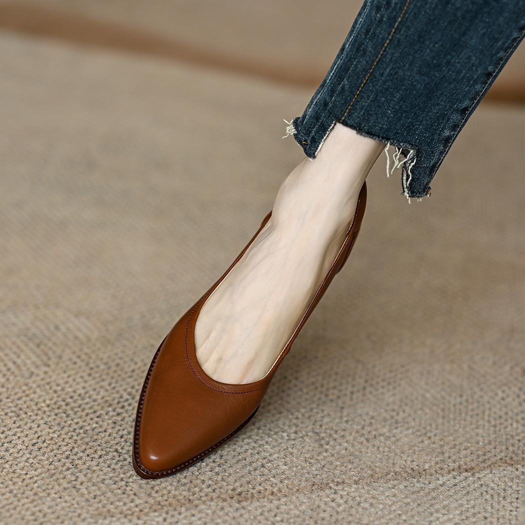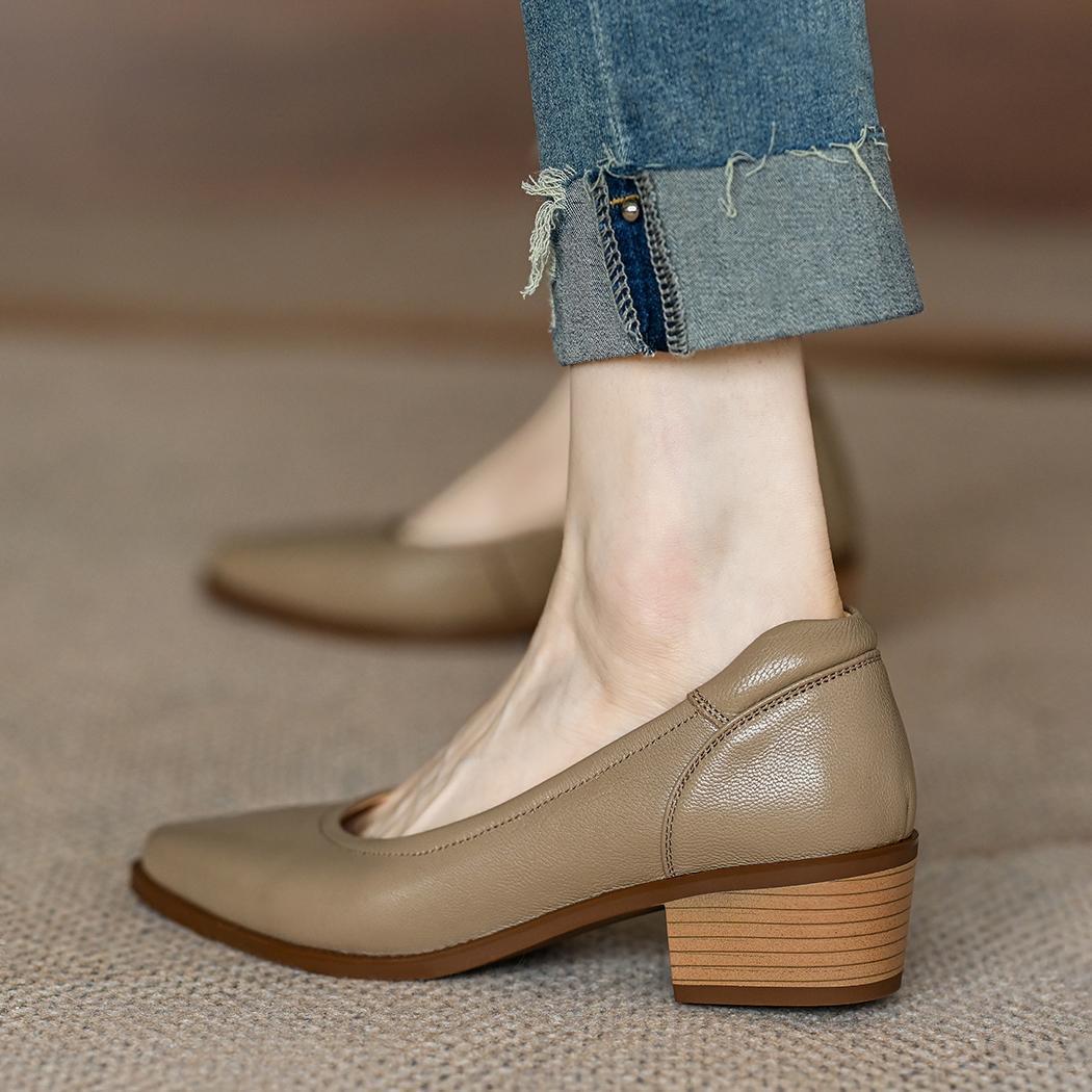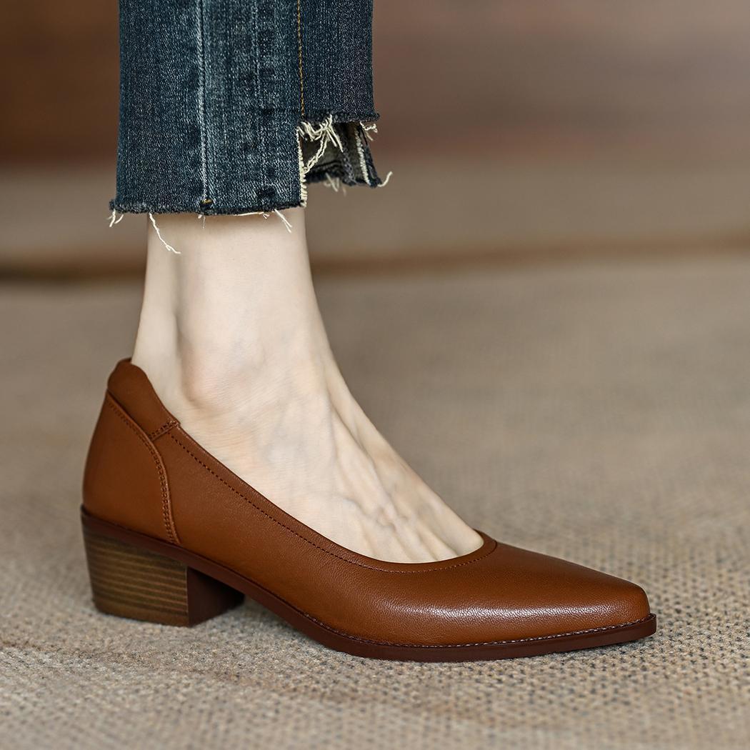 Women's Single Shoes Retro Brown Shallow Mouth Pointed Toe Commuting Mid-heel Anti-slip